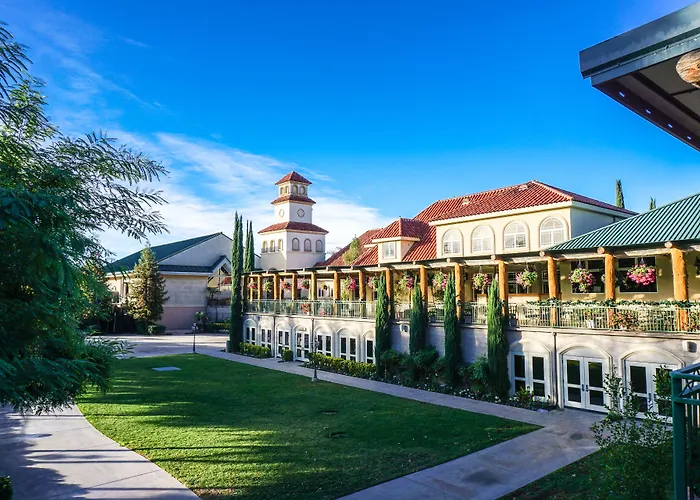 South Coast Winery Resort & Spa, a 4-star Temecula hotel with an 8.8/10 rating on Booking.com, showcases 63 acres of vineyards with luxurious accommodations. Guests can enjoy a range of amenities including a fitness center, heated outdoor saltwater pool, and award-winning onsite dining options.