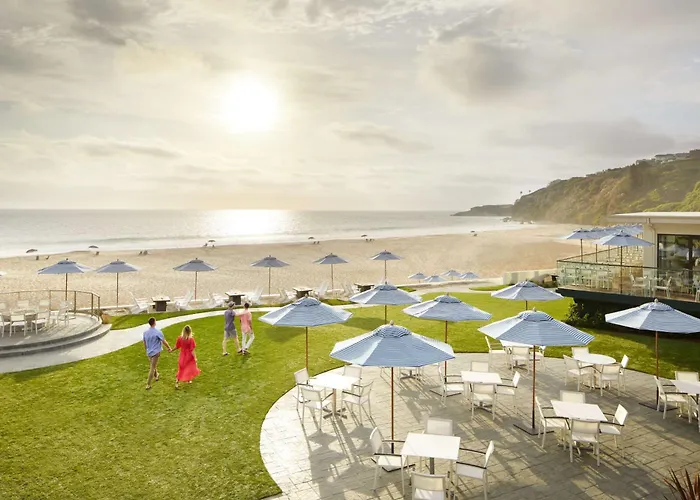 Waldorf Astoria Monarch Beach Resort & Club, a 5-star hotel rated 9.1/10 on Booking.com, offers a private beach club and an 18-hole championship golf course. This luxurious coastal retreat provides award-winning dining and high-end amenities, with an emphasis on refined Southern California hospitality.