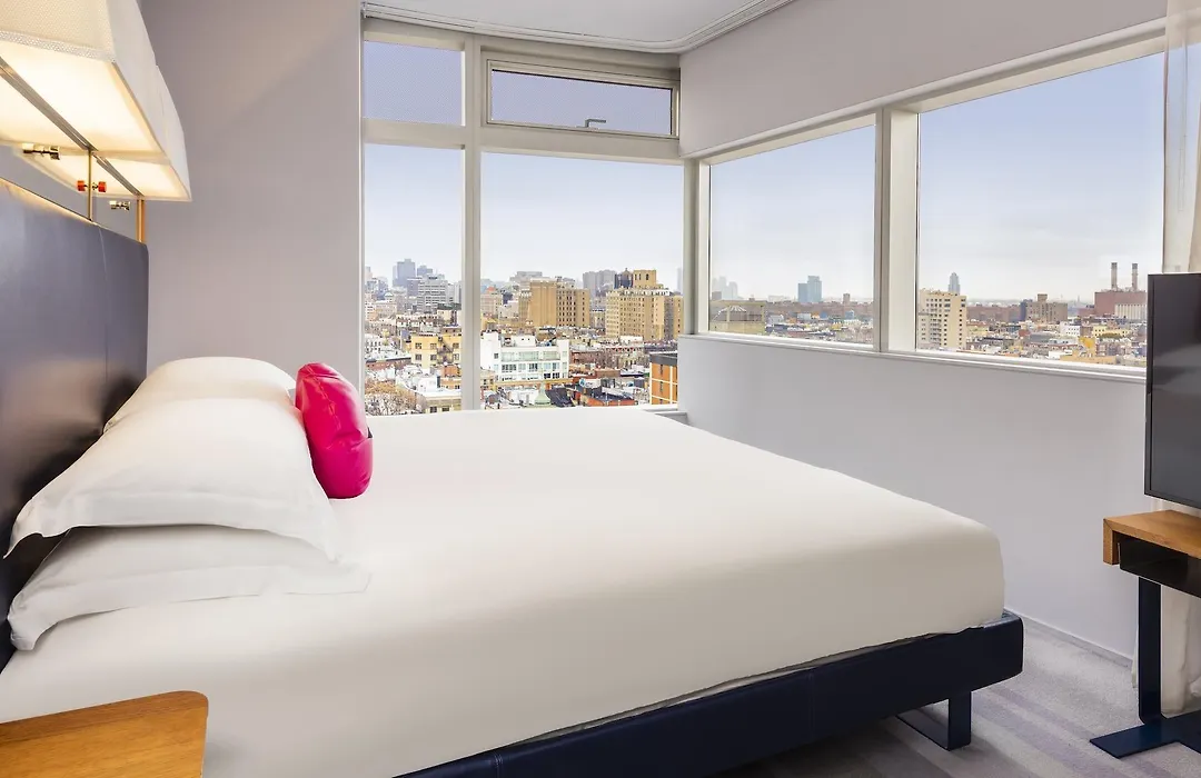 Rooms at The Standard, East Village are stylish and equipped with luxury amenities, including Bluetooth speakers and organic bath products. The room types vary from Standard Kings and Queens to spacious Corner Kings and suites with panoramic city views.