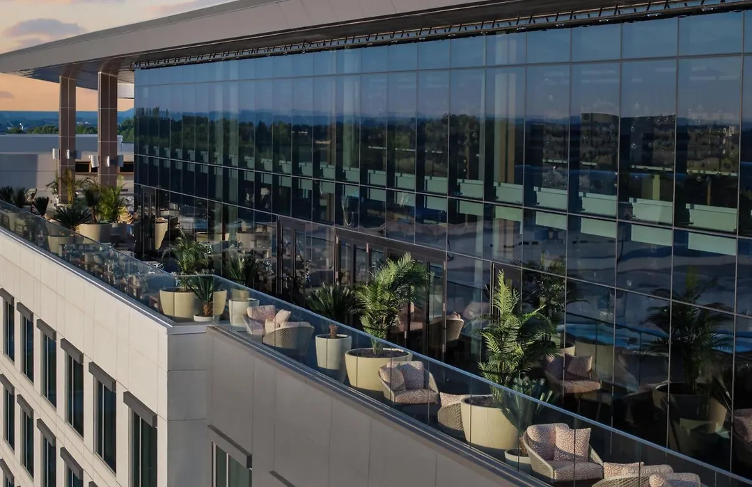 Dining options include SweetSong restaurant and bar, serving healthy meals for breakfast, lunch, and dinner, as well as the Overstory Rooftop Bar for drinks. Nearby dining choices feature Carrabba's Italian Grill and Panera Bread, both within 0.6 miles.