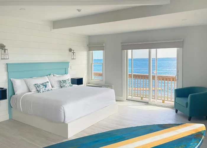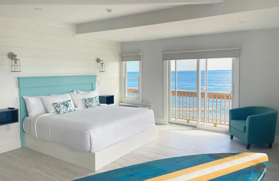 The hotel features outdoor activities like cornhole and beach volleyball, along with paddleboards and bikes for exploring the local area. Nearby attractions include Falmouth Heights Beach, just 0.6 miles away, and the Island Queen Ferry to Martha's Vineyard, less than a mile from the property.
