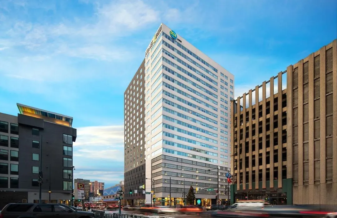 The hotel provides a 24-hour front desk, luggage storage, and a pet-friendly policy allowing two pets per room. Nearby transportation options include bus services just 2 minutes away and Denver Union Station, reachable within a 16-minute walk.